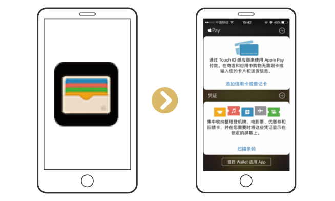2.轻点“添加借记卡或信用卡”或右上角的加号图标